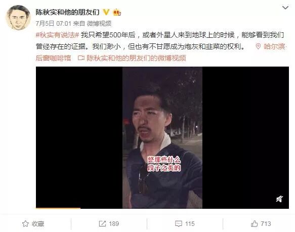 陳秋實 微博. 陳秋實武漢系列影片之惡 - 身為一個臺灣的旁觀者我很訝異品蔥對陳秋實的維護程度之高 這篇文章不是討論陳秋實的立場背景為何而是想指出他在武漢系列影片裡實際做了甚麼 我在品蔥看到的支持論點大致如下 b1他去武漢是冒著實際的生命危險所以不是大外宣. 蔡照陳秋實 百度照實吧唯一官博 任何貼吧事宜與建議請私信 長期招新. 推特微博五毛開始抹黑請問陳秋實的姑父是誰 - 有推特和微博流傳一則小道消息未經核實 陈秋实2004年在其姑父运作下以体育特长降20分入三本黑龙江大学法律系毕业时没通过法律入门券司考.