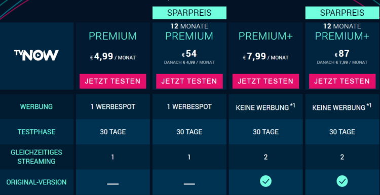 TV Now Premium. Das sind die aktuellen TVNOW Kosten. Ad Jetzt kostenlos anmelden und loslegen.